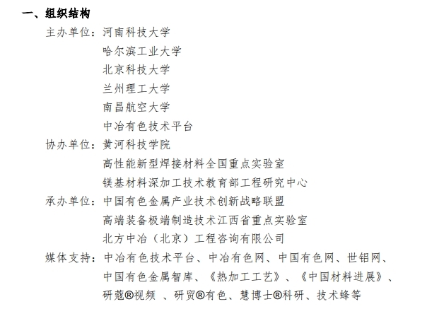 由河南科技大學、哈爾濱工業(yè)大學、北京科技大學、蘭州理工大學、南昌航空大學、中冶有色技術平臺主辦,中國有色金屬產業(yè)技術創(chuàng)新戰(zhàn)略聯盟、高端裝備極端制造技術江西省重點實驗室、北方中冶(北京)工程咨詢有限公司承辦的“2025 全國有色金屬材料加工與成形技術交流大會”定于 2025 年 7 月 16-18 日在河南省洛陽市召開。